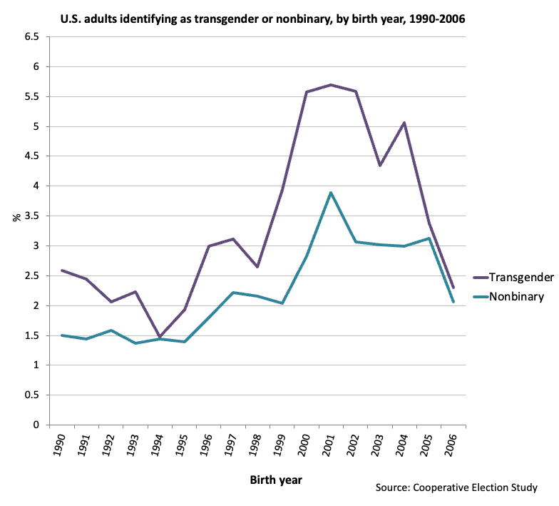 It turns out identifying as transgender really is in free fall among the young in the U.S. So is identifying as nonbinary. In other words, Kaufmann was right (with what some consider the wrong data, but still right).