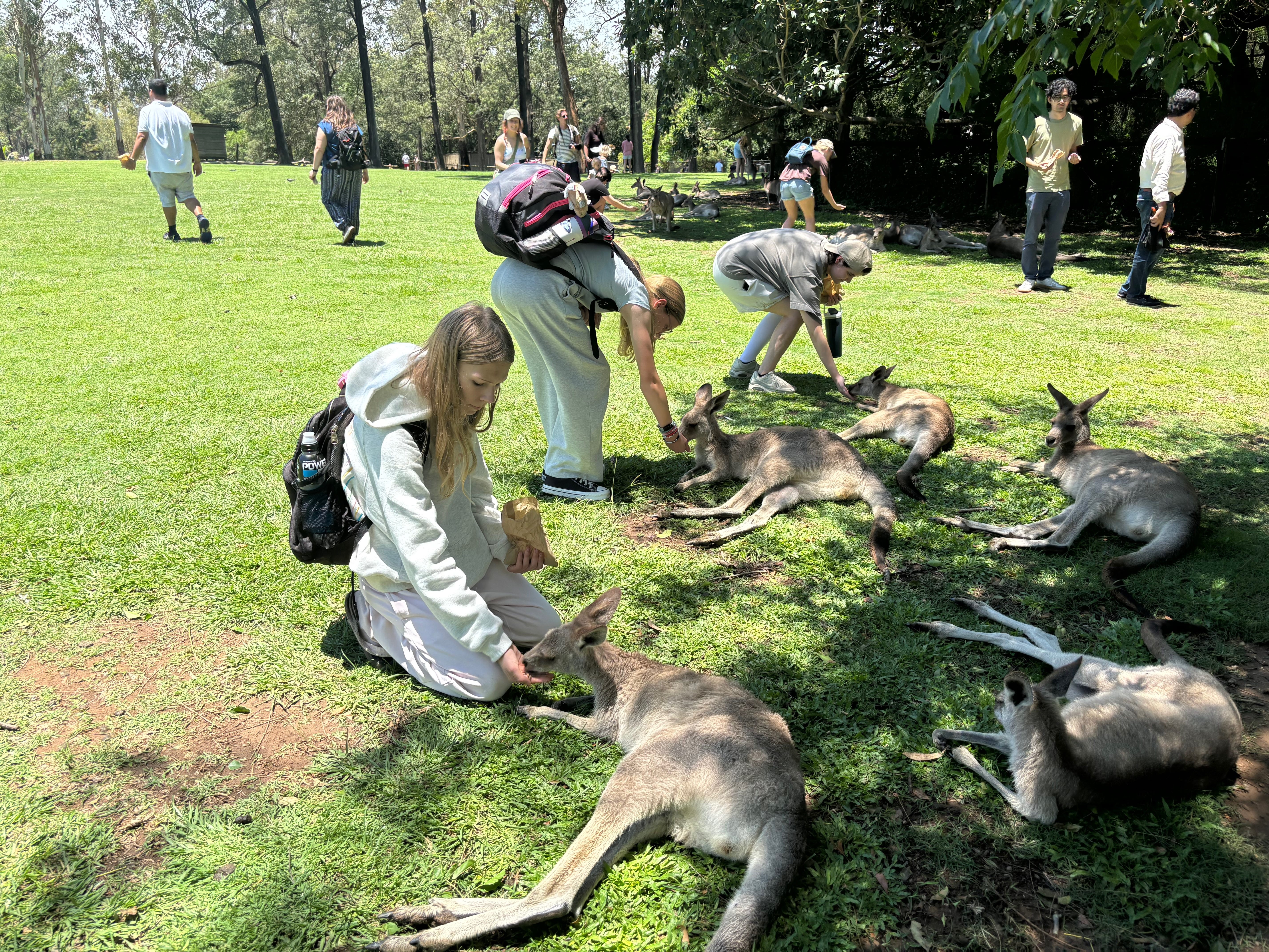 My kids & other visitors with the friendly kangaroos at Lone Pine. Still not going to challenge one to a fight, though.